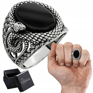 Sygnet srebrny Wąż pr. 925 Pierścień z Owalnym Onyksem i wężem r. 21