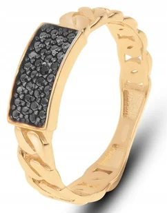 WYJĄTKOWY ZŁOTY PIERŚCIONEK PANCERKA Z CZARNYMI KAMIENIAMI 14KT 585