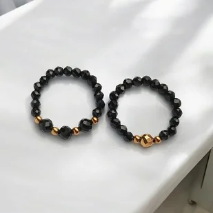 Zestaw 2 pierscionków w dobrej cenie:) Pierścionki elastyczne zostały wykonane z drobniutkich kuleczek fasetowanego onyksu 3 i 4mm oraz przekładek ze złotego hematytu. rozmiar standardowy S-M BIŻU ...