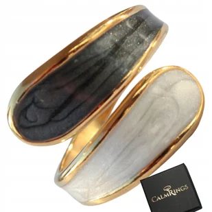 ZŁOTY PIERŚCIONEK CZARNO-BIAŁY WZÓR stal chirurgiczna imitacja masy perłowe