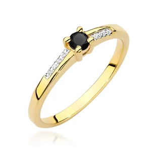 Złoty pierścionek Czarny Diament 0,12ct żółte złoto pr. 585 Piękny złoty pierścionek pr. 585. Produkt posiada certyfikat autentyczności kamienia. Kruszec kolor: Złoto żółte Próba złota: