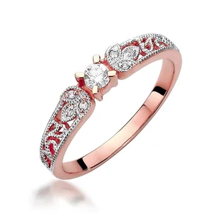 Złoty pierścionek Diament 0,10ct różowe złoto pr. 585 Piękny złoty pierścionek pr. 585. Produkt posiada certyfikat autentyczności kamienia. Kruszec kolor: Złoto różowe Próba złota: