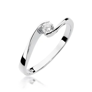 Złoty pierścionek Diament 0,13ct białe złoto pr. 585 Piękny złoty pierścionek pr. 585. Produkt posiada certyfikat autentyczności kamienia. Kruszec kolor: Złoto białe Próba złota: