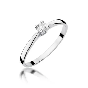 Złoty pierścionek Diament 0,15ct białe złoto pr. 585 Piękny złoty pierścionek pr. 585. Produkt posiada certyfikat autentyczności kamienia. Kruszec kolor: Złoto białe Próba złota: