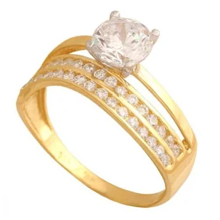 Złoty Pierścionek z Cyrkoniami 585 Nowoczesny 3 g, R 16 Rodium