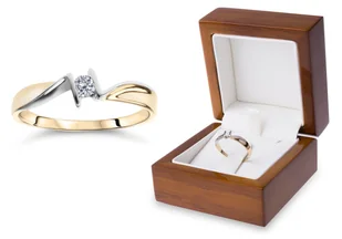 Piękny, wyjątkowy pierścionek zaręczynowy wykonany z żółtego oraz białego złota. Zdjęcia są naszego autorstwa, przedstawiają dokładnie ten produkt, który kup...
