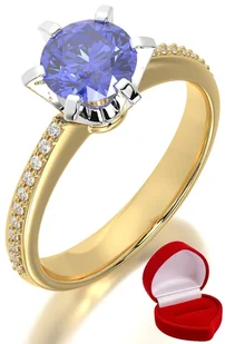 ZŁOTY PIERŚCIONEK ZARĘCZYNOWY 585 14k TANZANIT 1 ct + PUDEŁKO R21