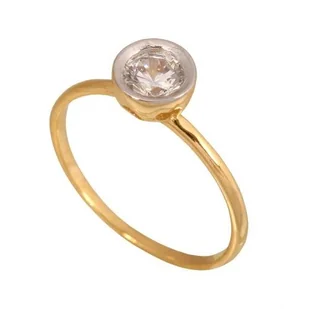 Złoty Pierścionek Zaręczynowy z Cyrkonią 585 1.4 g, R 10 Rodium