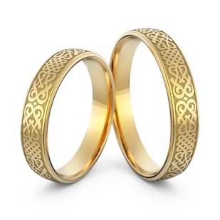 Przedstawiamy Państwu przepiękne <strong>złote grawerowane obrączki</strong> o profilu lekko zaokrąglonym o powierzchni polerowanej. Obrączki przyozdobione ciekawym grawerowanym wzorem wykonanym dookoła obrączki. Wzór bardzo pięknie podkreśla klasyczny charakter obrączek. Na życzenie możemy zmienić grawerowany wzór na dowolny przedstawiony przez Państwa. <br /> Obrączka męska standardowo wykonana jest w formie <strong>klasycznej półkrągłej obrączki </strong>ze zdobieniami.