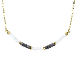 Naszyjnik choker, który łączy w sobie głębię opalizującej, białej masy perłowej z szarym larvikitem. Ten unikatowy naszyjnik został zaprojektowany z myślą o kobietach ceniących luksus i styl. Wykończenie najwyższej jakości nadaje naszyjnikowi luksusowy wygląd, jednocześnie zapewniając trwałość i odporność na czynniki zewnętrzne. Niezależnie od tego, czy planujesz specjalny wieczór, czy szukasz wyjątkowego dodatku do codziennego stroju, naszyjnik choker z masą perłową i larvikitem jest doskonałym wyborem. Dodaj blasku swojemu wyglądowi i poczuj luksus dotyku szlachetnych kamieni każdego d