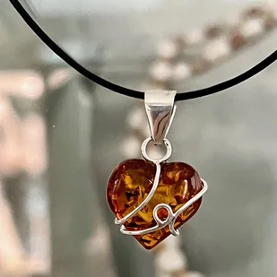 Naszyjnik dla Babci - magiczna moc bursztynu opleciona srebrną nitką prawdziwej miłości. n168a/mały Oferujemy wyjątkową zawieszkę w kształcie serca, wykonaną z wysokiej jakości bursztynu, który zachwyca sw ...