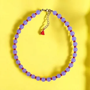 Efektowny choker w super modnym zestawieniu kolorystycznym (lawendowy fiolet + intensywna czerwień) Naszyjnik na solidnej lince jubilerskiej - został wykonany w całości z jadeitu (kule 8mm, plasterki ok. ...
