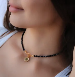 Choker naszyjnik onyksy moneta srebro 925 pozłacane