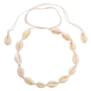 CHOKER naszyjnik wiązany MUSZELKI biały SZNUREK