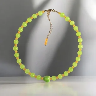 Efektowny choker w soczystym połączeniu kolorystycznym: jasna limonka + żółty. Naszyjnik na solidnej lince jubilerskiej - został wykonany w całości z jadeitu (kule 8mm, kuleczki 4mm) oraz ceramic ...