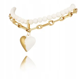 CHOKER Z AGATAMI I SERCEM (C23/KOR/166AU) Pozłacany choker z agatami i łańcuchem , z ręcznie malowanym, biało złotym sercami. Długość chokera 30 cm + 10 cm przedłużki. Wielkość serduszka ok 2,8 cm/ 3 cm.