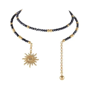 Delikatny i pełen uroku choker wykonany z drobnych, granatowych koralików, uzupełnionych maleńkimi kuleczkami, które dodają całości lekkości i subtelnego wykończenia. Głęboki granat pięknie kontrastuje z zawieszką. Centralnym punktem naszyjnika jest wiszące słoneczko oraz kuleczka na łańcuszku, które porusza się przy każdym ruchu, tworząc efekt subtelnego, migoczącego akcentu. To biżuteria, która łączy minimalizm z nutą symbolicznej energii i pozytywnego charakteru. Cechy produktu:
