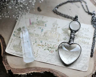 Oryginalny wisiorek stworzony w pracowni MARIAELA :) Szklane serce sprawia, że jest bardzo romantyczny, idealnie nadaje się na prezent dla ukochanej osoby :) Wpisuje się również w stylistykę boho ślubu ...