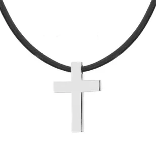 Naszyjnik z klasycznym, prostym krzyżykiem, idealnie komponującym się z każdym strojem i stylem. Ten elegancki naszyjnik, wykonany z wysokiej jakości stali szlachetnej w srebrnym kolorze, zawieszony jest na czarnym rzemieniu, co nadaje mu nowoczesnego i stylowego wyglądu. Jego uniwersalny design sprawia, że jest to idealny wybór dla mężczyzn, ale również dla kobiet, nadający wyrafinowania każdej stylizacji. Jego minimalistyczna forma sprawia, że pasuje on do każdej okazji – od codziennego noszenia po wyjątkowe wydarzenia. Dzięki wykorzystaniu stali szlachetnej, naszyjnik jest