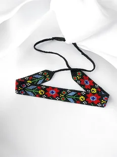 Ręcznie wykonany naszyjnik z koralików, inspirowany tradycyjnym wzornictwem ludowym. Kolorowe kwiaty na czarnym tle tworzą efektowną i wyjątkową kompozycję. Idealny dodatek do stylizacji z charak ...