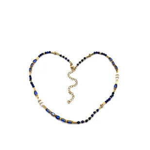 Krótki niebieski naszyjnik choker Surowiec: stal nierdzewna pozłacana 14k złotem Rodzaj zapięcia: lobster Kamienie naturalne: lapis lazuli, perły naturalne D...