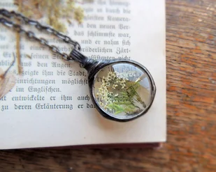 Uroczy naszyjnik terrarium wykonany przez MARIAELA Zasuszone polne kwiaty są zamknięte w szkle na zawsze. Długość naszyjnika: 4,7 cm Długość łańcucha: 80 cm Kocham zbierać i suszyć kwiaty oraz inne rośliny. St ...