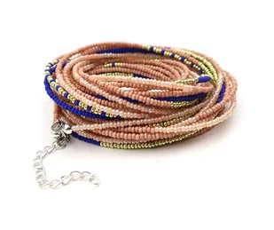 Bardzo długi sznur korali wykonanych na mocnej lince jubilerskiej z drobnych, szklanych koralików o średnicy 2 mm czeskiej firmy Jablonex. Sznur można nosić także jako bransoletkę, a na szyi upinać wedle f ...