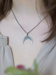 Biżuteria handmade. Zawieszka wykonana ręcznie ze srebra próby 925 w kształcie młotkowanego półksiężyca, zwana również jako Lunula. Był to starosłowiański sy...