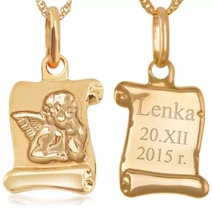 Złoty Medalik 585 Aniołek z Łańcuszkiem - Idealny Prezent na Chrzciny, Na Roczek, Dla Dziecka, Na I Komunię! Wykonamy ozdobny GRAWER Twojej dedykacji - Murrano.