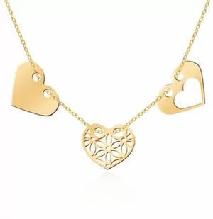 Złoty Naszyjnik Celebrytka 585 Sensual Trio Serca Ażur Grawer