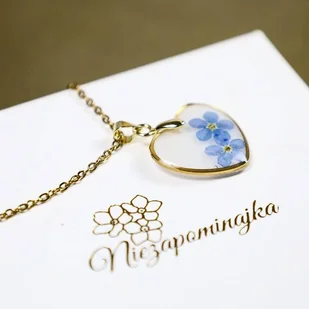 Oto kilka cech tego pięknego naszyjnika: Kształt serca: Naszyjnik ma delikatny kształt serca, symbolizujący miłość i uczucia. Kwiaty Niezapominajki: Na białym tle znajdują się urokliwe kwiaty Niezapomi ...