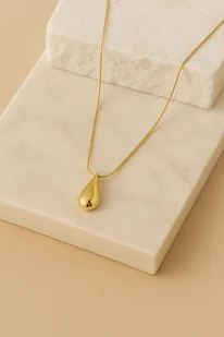 Wyrafinowana prostota, która nigdy nie wychodzi z mody. Naszyjnik celebrytka pozłacany z zawieszką kroplą to propozycja dla kobiet, które kochają subtelną, ale wyrazistą biżuterię. Model wykonany z wysokiej jakości stali szlachetnej 316L pokrytej trwałą warstwą pozłacania wyróżnia się nowoczesnym designem i uniwersalnym charakterem. Delikatny łańcuszek typu snake o długości 41 cm + 5 cm regulacji idealnie układa się na dekolcie, tworząc zmysłowy kontur wokół szyi. Serce projektu stanowi minimalistyczna zawieszka w kształcie opływowej kropli – symbol elegancji, kobiecości i harmonii.