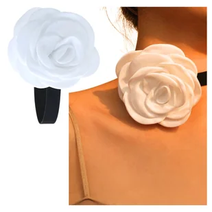 Styl i wygoda w jednym! ✨ Wymiary: Długość 34cm (możliwość przedłużenia o 7 cm) Szerokość kwiatka 10 cm Wysokość kwiatka 10 cm ✨ Kolor: Biały ✨ Materiał: Tkanina satynowa Taśma ✨ Ilość sztuk: 1 sztuka Modelka prezentuje ten sam model chokera w innym kolorze - również dostępny w naszej ofercie.