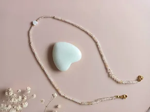 Ten naszyjnik jest pełen miłości :) Serduszko z masy perłowej w minimalistycznym wydaniu, w towarzystwie cytrynu - idealnie sprawdzi się do delikatnych stylizacji. Tych codziennych jak i bardziej eleg ...