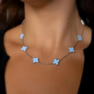 Naszyjnik damski z koniczynkami baby blue ze stali jubilerskiej