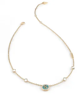 OPIS SZCZEGÓŁOWY WYKONANIE Damski platerowany pozłacany naszyjnik ze stali nierdzewnej pokryty odporną na ścieranie powłoką w kolorze złotym. Zdobiona cyrkoniami okrągła zawieszka w kształcie koła / monety z wygrawerowanym logo 4G i napisem LIVE YOUR DREAM. Środek zawieszki w kolorze morskim DŁUGOŚĆ 40 - 44 cm ZAPIĘCIE Typu karabińczyk, regulowane, zakończone trójkątem z logo ŚREDNICA ZAWIESZKI 12 mm