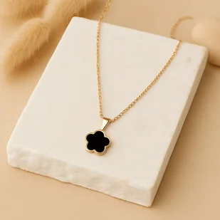 Poznaj ponadczasową biżuterię, która łączy symbol szczęścia z nowoczesną elegancją. Naszyjnik czterolistna koniczyna czarny stal szlachetna 316L to subtelny dodatek, który idealnie wpisuje się w aktualne trendy minimalistycznej biżuterii – delikatny, wyrazisty i uniwersalny. Zawieszka w kształcie czarnej koniczyny wykonana została z wysokiej jakości materiałów – osadzona w pozłacanej stali szlachetnej, prezentuje się zjawiskowo w zestawieniu z prostym łańcuszkiem. Czerń wisiorka przyciąga wzrok, a jego miękki, symetryczny kształt doskonale komponuje się zarówno z eleganckimi stylizacjami, jak i casualowymi lookami.