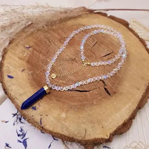 Modny naszyjnik ze stali szlachetnej platerowanej 14 - karatowym złotem z kryształem górskim Świetnie pasuje do eleganckich, jak również do codziennych styli...
