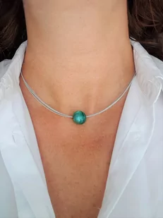Naszyjnik kulka zielone szkło weneckie struna 45cm NASZYJNIK Z POJEDYŃCZYM ELEMENTEM ZIELONO TURKUSOWEJ KULKI ZE SZKŁA WENECKIEGO materiał : struna w kolorze...