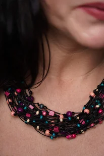 Naszyjnik z nici lnianych z drewnianymi kulkami. Długość 50 cm długość można przedł ...