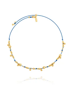 Naszyjnik na niebieskim sznureczku z pozłacanymi kuleczkami