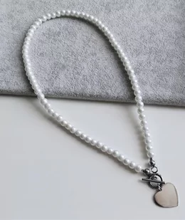 naszyjnik perły 6mm DUŻE SERCE srebrna stal 42cm BARDZO MODNY NASZYJNIK !!!! ŚWIETNY POMYSŁ NA PREZENT ... MUSISZ GO MIEĆ ! :) NASZYJNIK : SZKLANE PEREŁKI ZE...