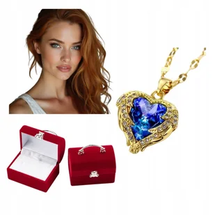 ZESTAW: NASZYJNIK SERCE KRYSZTAŁOWE W PIĘKNYM OPAKOWANIU * ZŁOTE NIEBIESKIE SZAFIROWE * ELEGANCKA BIŻUTERIA NA PREZENT DLA NIEJ - NA RÓŻNE OKAZJE * URODZINY ...