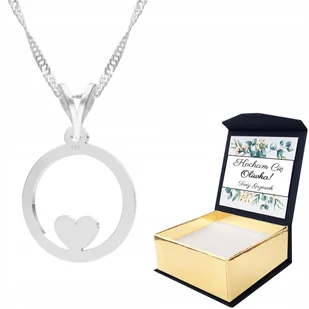 Naszyjnik srebrny Koło Serduszko Serce + pudełeczko z własnym nadrukiem Surowiec: Srebro Próba: 925 Kamień: Brak Typ: Naszyjnik Długość: 42cm + 3cm (przedłużka w kształcie serc) Splot łańcuszka: