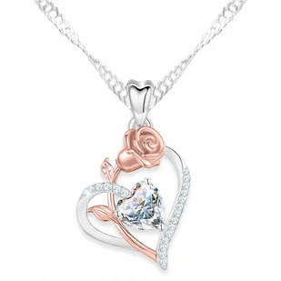 Naszyjnik Srebrny Białe Serce Kryształ Kwiat Róża Pozłacana SREBRO 925