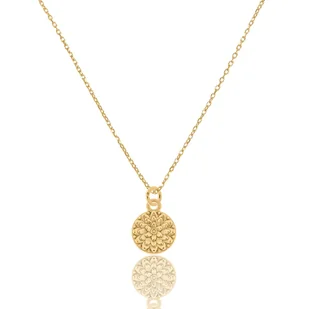 Naszyjnik srebrny pozłacany z kwiatkiem. Całość wykonana ze srebra 925 pokrytego 24 karatowym żółtym złotem. Rozeta / Kwiat: 9,0 x 11,5 mm; grubość: 1,3 mm Długość łańcuszka do wyboru: