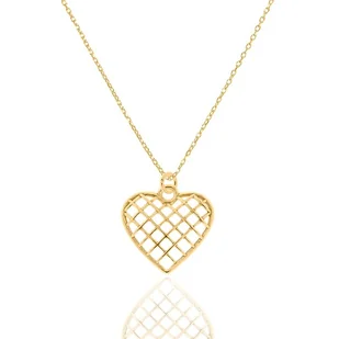 Naszyjnik srebrny pozłacany z sercem. Całość wykonana ze srebra 925 pokrytego 24 karatowym żółtym złotem. Siatkowane Serce: 17,2 x 17,5 mm; grubość: 2,2 mm Długość łańcuszka do wyboru: 42cm | 45cm | 50cm Grubość ...