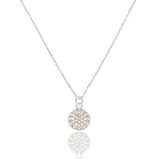 Naszyjnik srebrny z kwiatkiem. Całość wykonana ze srebra 925. Rozeta / Kwiat: 9,0 x 11,5 mm; grubość: 1,3 mm Długość łańcuszka do wyboru: