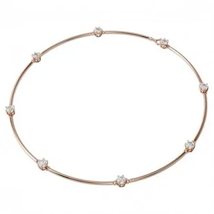 Naszyjnik SWAROVSKI typu choker Constella Ten delikatny naszyjnik typu choker został wykonany z cienkiej, pozłacanej taśmy wysadzanej okrągłymi, błyszczącymi kamieniami w szlifie brylantowym. Idealnie nada się zarówno do codziennych stylizacji jak i na wieczorne wyjścia. Długość: 38 cm