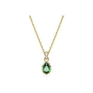 Ten mieniący się wisiorek z rodziny Stilla jest może niewielki, ale za to niesamowicie piękny. Przypominający świetlistą kropelkę, umieszczony centralnie zielony kamień jubilerski w szlifie gruszkowym osadzono w oprawie z powłoką w odcieniu złota, upiększając ozdobę kwadratowymi kryształami bezbarwnymi wzdłuż krawędzi oraz na obwodzie pierścienia. Długość: 38 cm + 4,5 cm Szerokość: 0,7 mm Do każdego produktu firmy SWAROVSKI załączony jest certyfikat autentyczności oraz oryginalne opakowanie producenta.